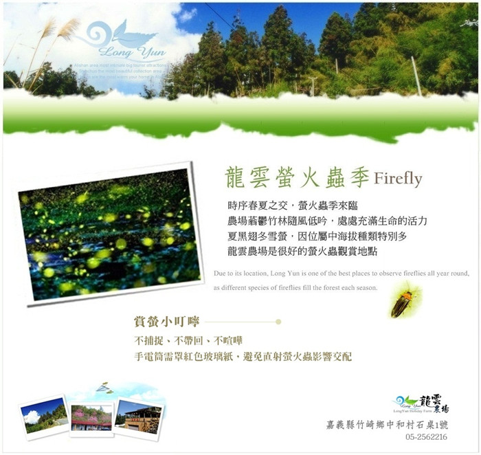 龍雲農場螢火蟲季開跑囉!美麗如星空的夜晚,在龍雲農場靜靜的享受與觀賞。